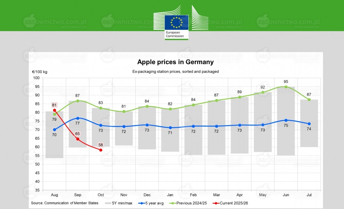 Sprawdźcie jak kształtowały się ceny jabłek w krajach UE w październiku 2025 roku. Które jabłka były najtańsze a które najdroższe - polskie, włoskie, francuskie czy niemieckie ?