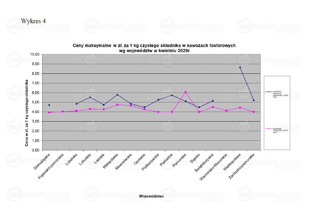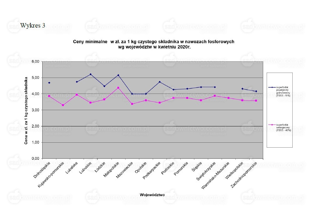 - superfosfat pojedynczy granulowany 164,00 zł/dt w województwie wielkopolskim;