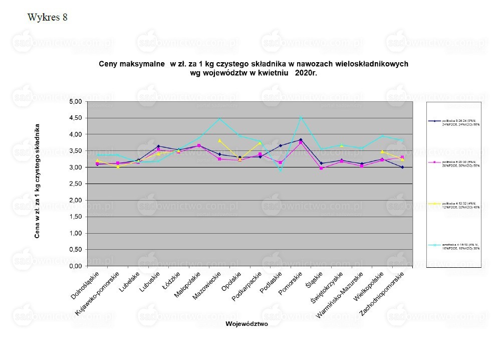 Wśród cen najwyższych poszczególnych nawozów największe wartości osiągnęły: