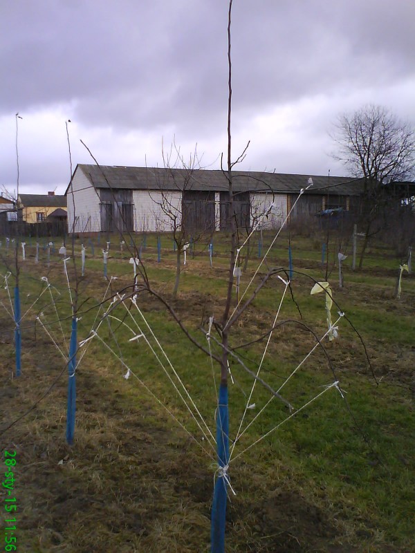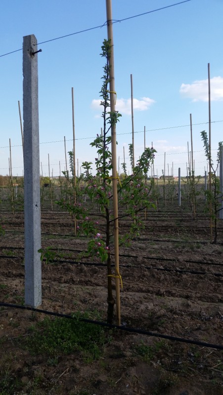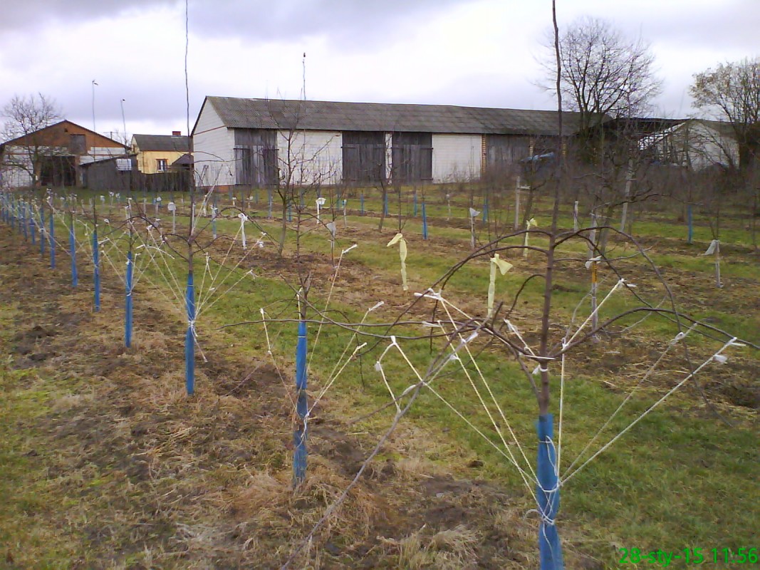 Drzewka mają ładne przyrosty... Radzę powbijać w ziemię kołki i wszystko porozginać do poziomu... Poza przewodnikiem oczywiście, który ma sterczeć pionowo i przewodzić...
