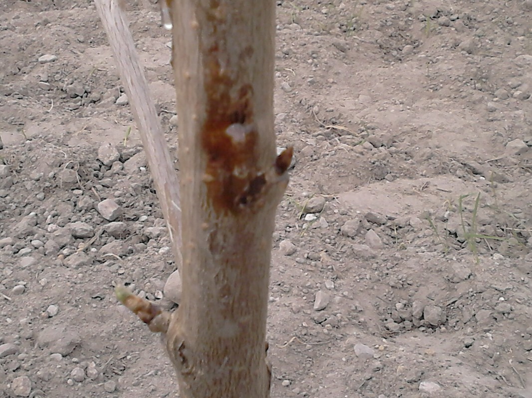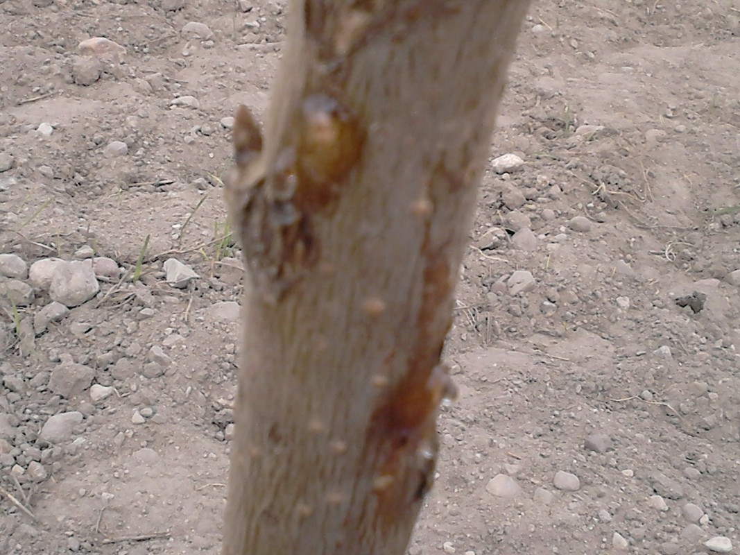 Witam.wiosną posadziłem młode drzewka czereśni(jednoroczne ) z dobrej szkółkia a po około miesiącu zaczeła pojawiac się guma jak na zdjęciu.Co może byc przyczyną takich objawów.Czy to rak?