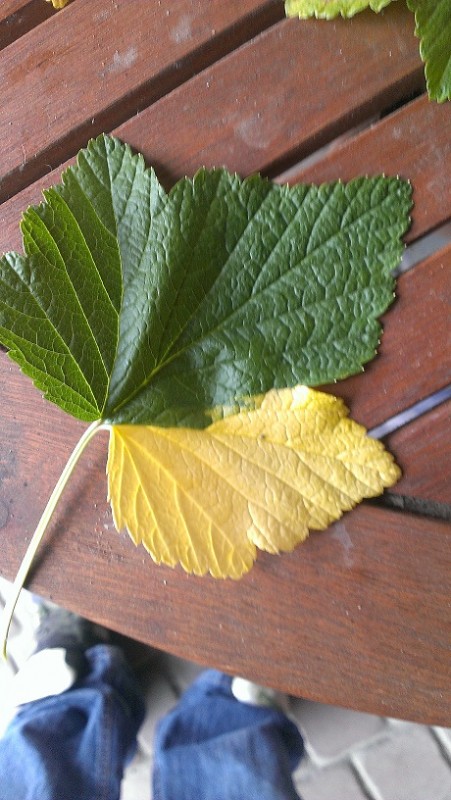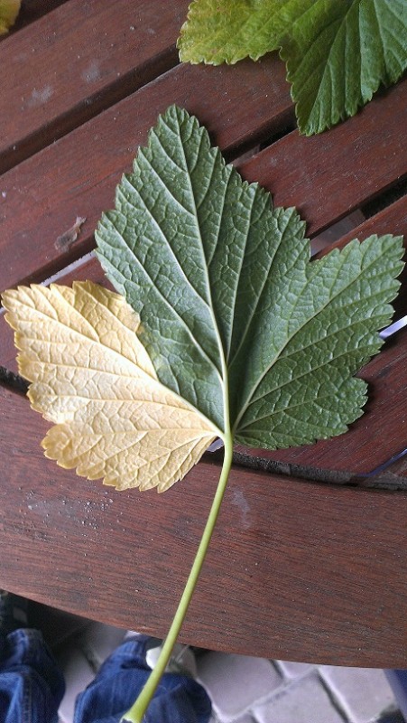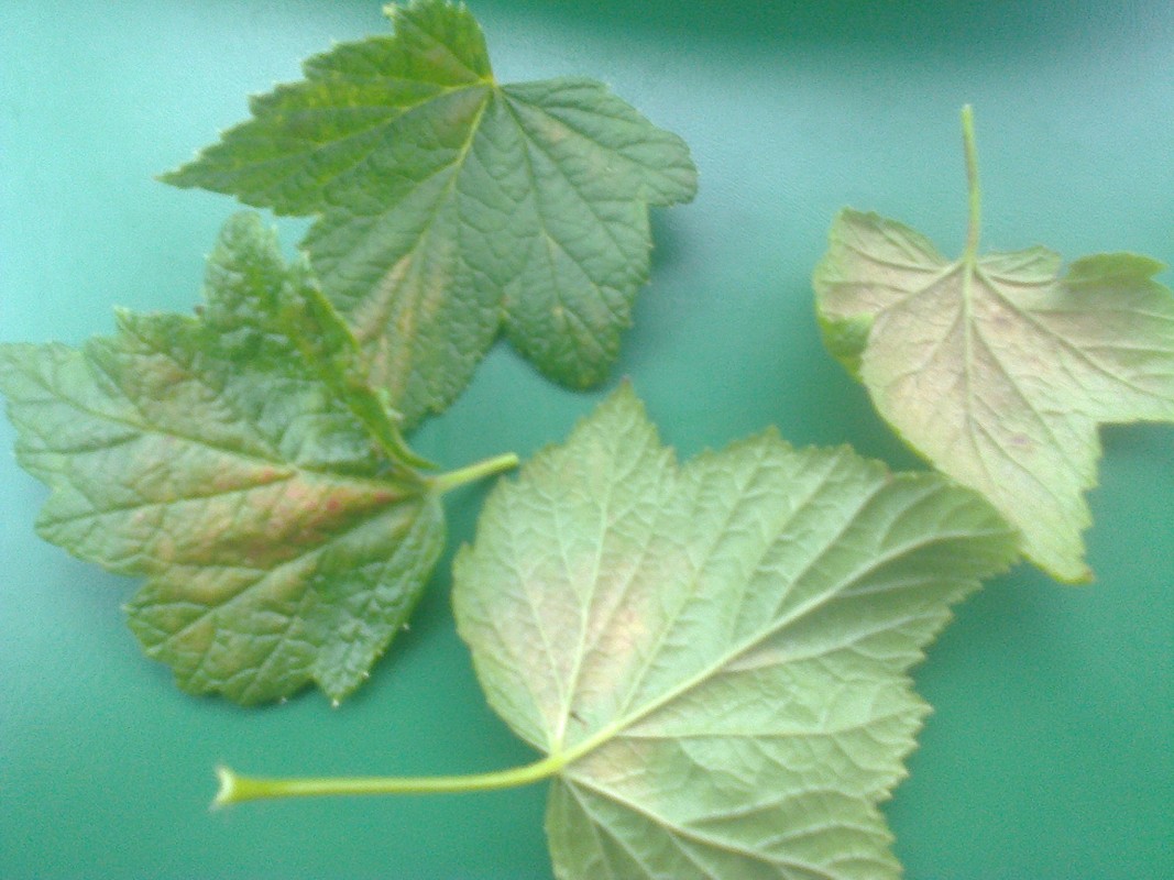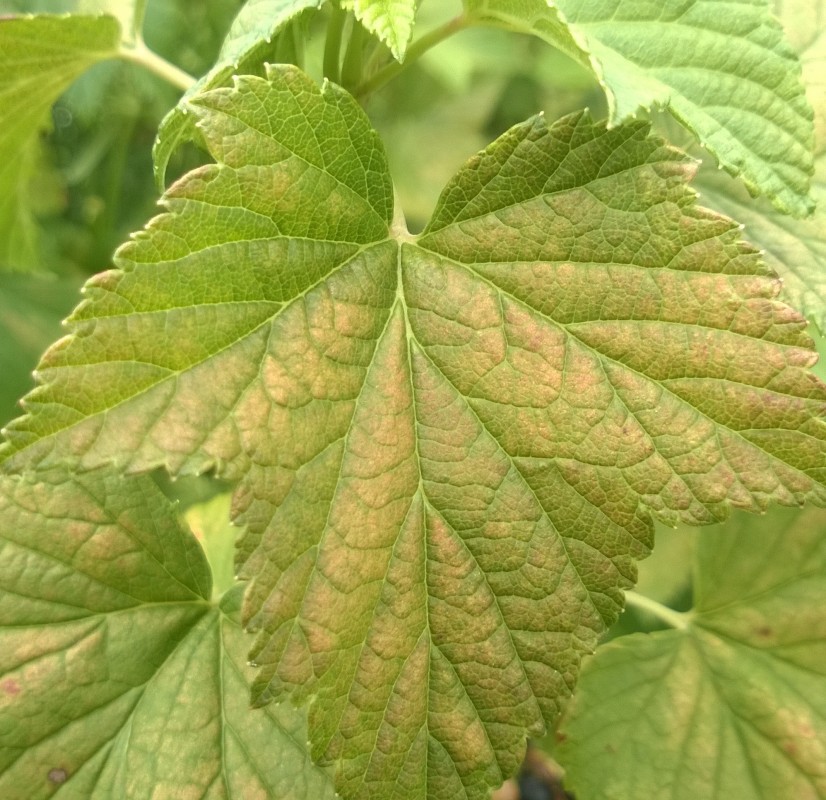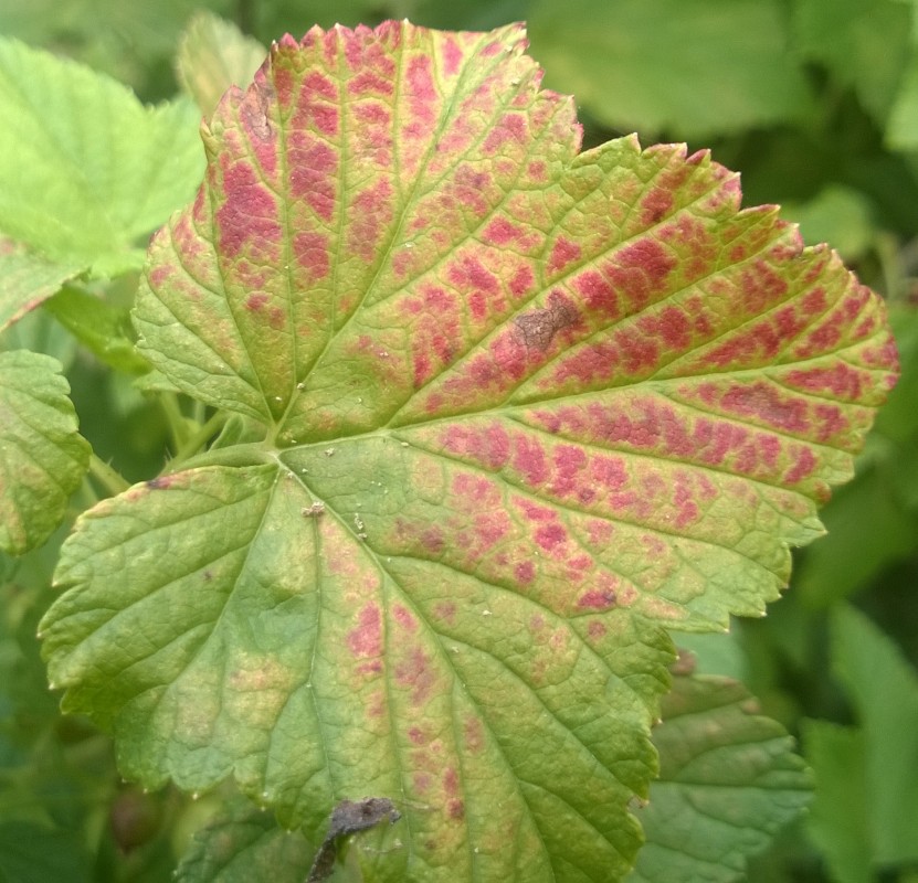 Proszę o pomoc w w rozpoznaniu przyczyny odbarwień na liściach porzeczki czarnej, fotka poniżej, z góry dziękuję