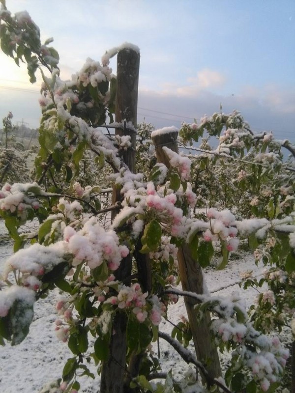 Gmina Belsk Duży, Lewiczyn, minus 5-6 stopni, czereśnia szkody 95 %, Genewa różowy pąk 100 %, tak samo Jonagoldy, Ligol, Idared... reszta odmian czeka na noc czwartkową :(