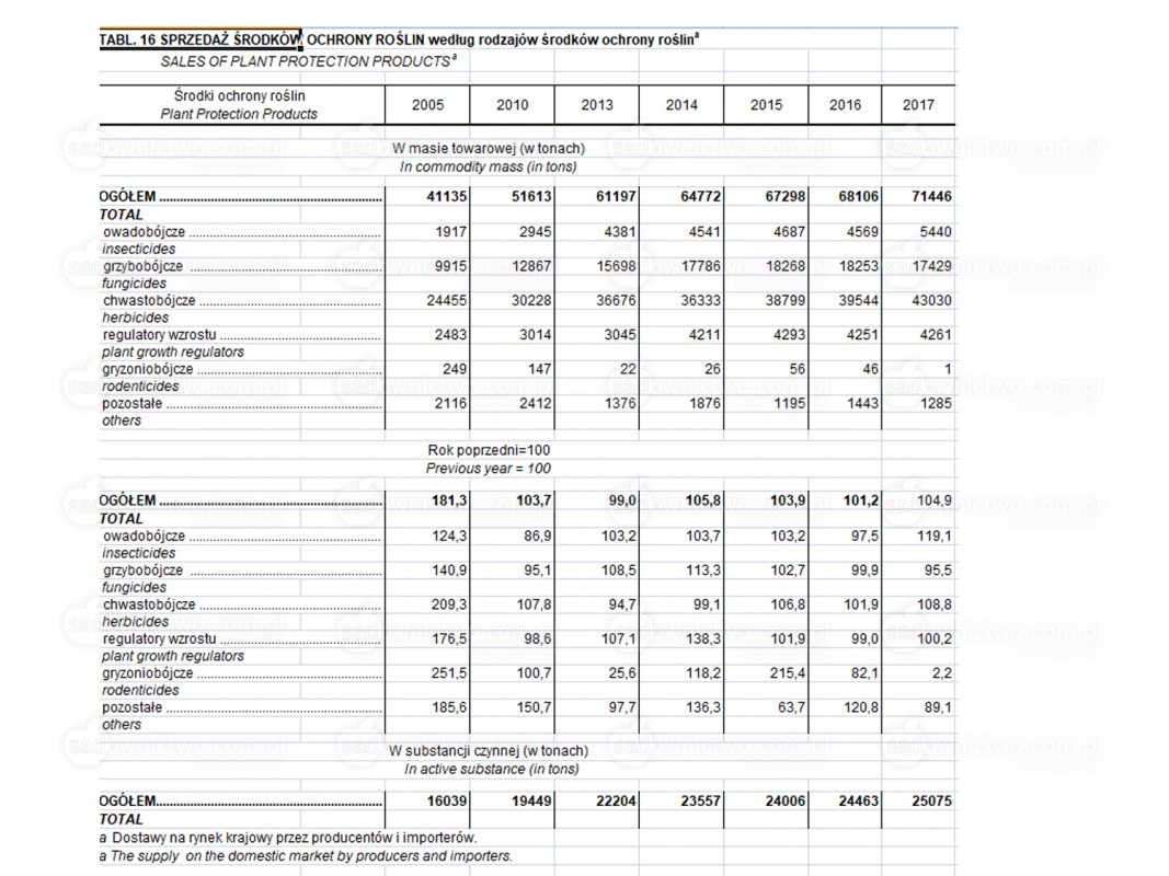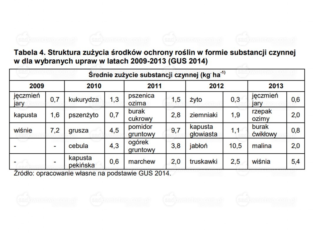 - Zużycie środków ochrony roślin
