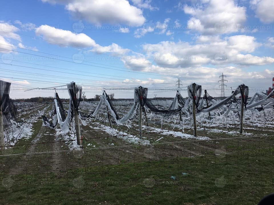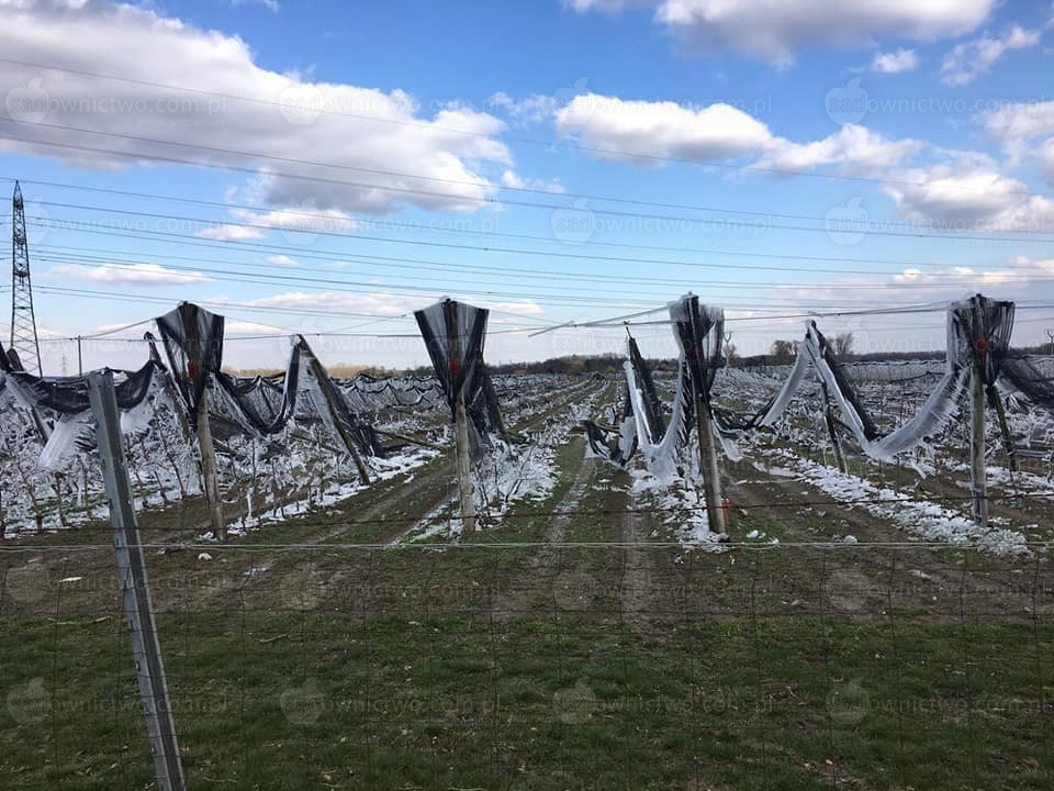 Część sadowników włączyło instalację, a część pozostawiła na następną noc. Niestety taka duża ilość wody rozmiękczyła grunt że dziś o 10 rano powychodziły z ziemi kotwy i 10 ha sadu u jednego z sadowników uległo na ziemię.