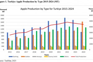 Jabłka w tym roku były uprawiane w Turcji na około 165 tys. ha, podobnie jak w roku ubiegłym.