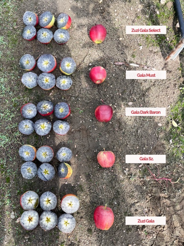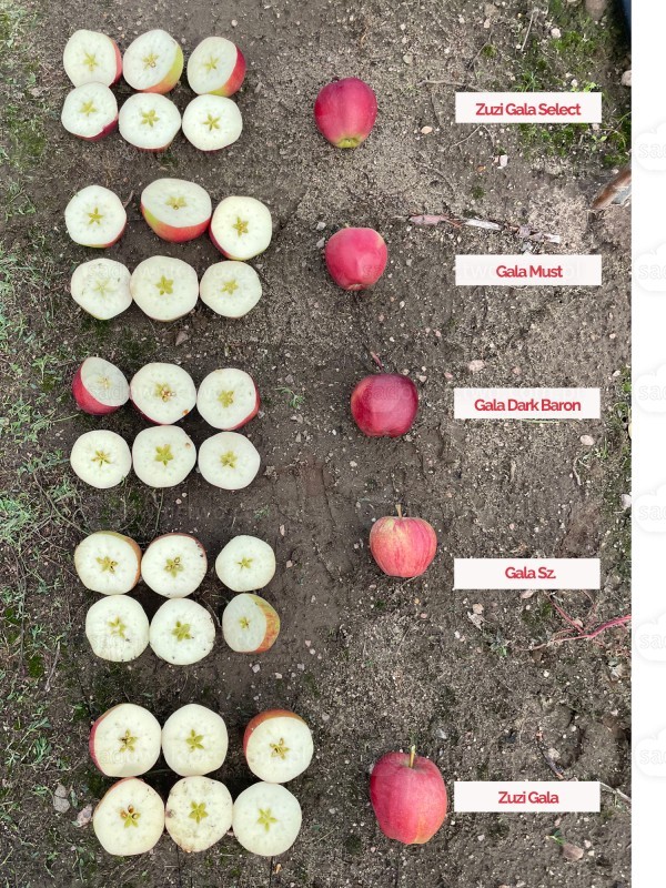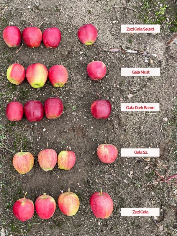 Najlepszą średnicę - wielkość na chwilę obecną posiada Zuzi Gala Select, którą jak w poprzednim sezonie będzie można zebrać jednokrotnie z drzew, oraz Gala Must. Jednak w przypadku Gali Must oraz Gali Sz. nadal czekamy na kolor.